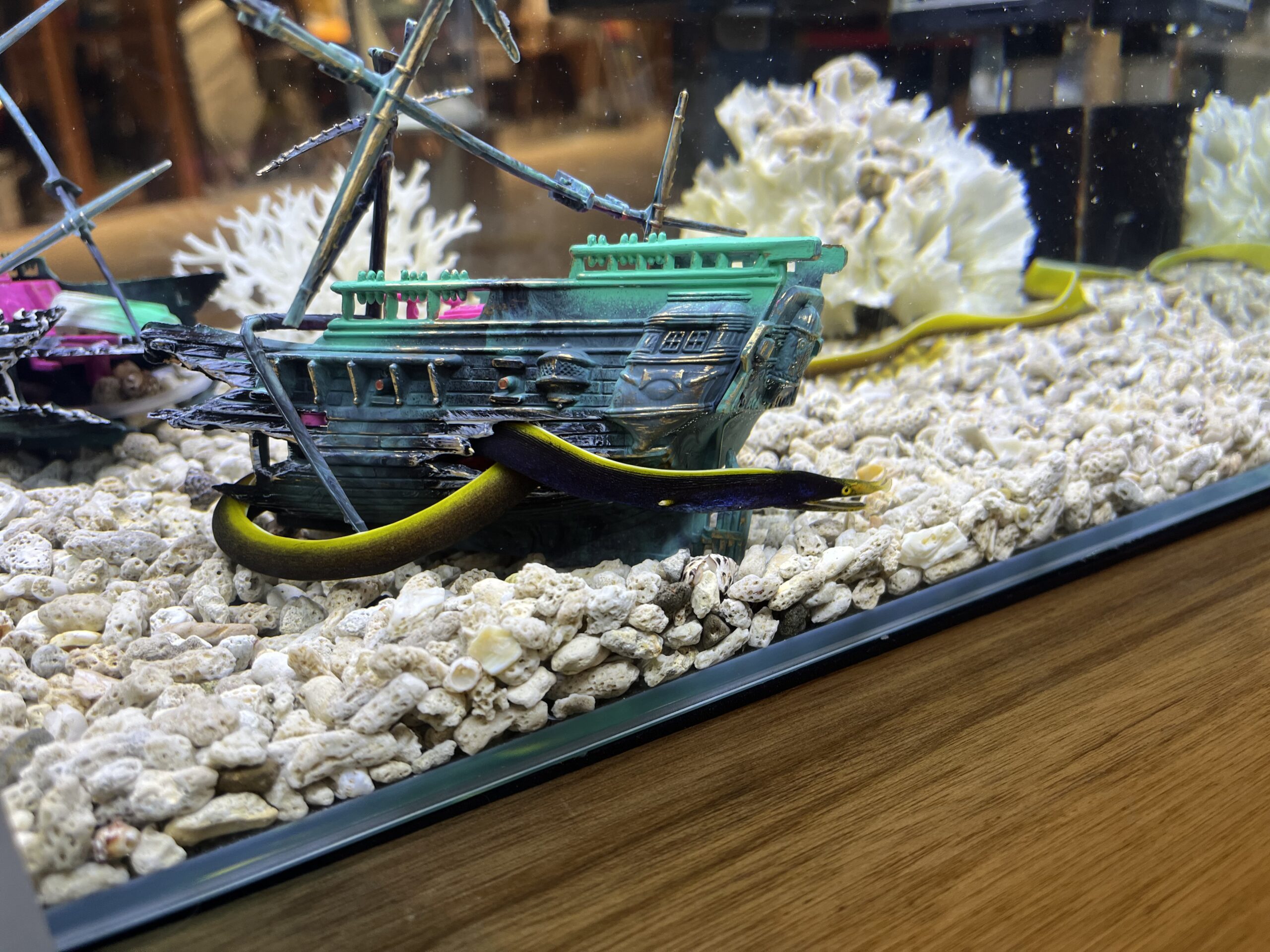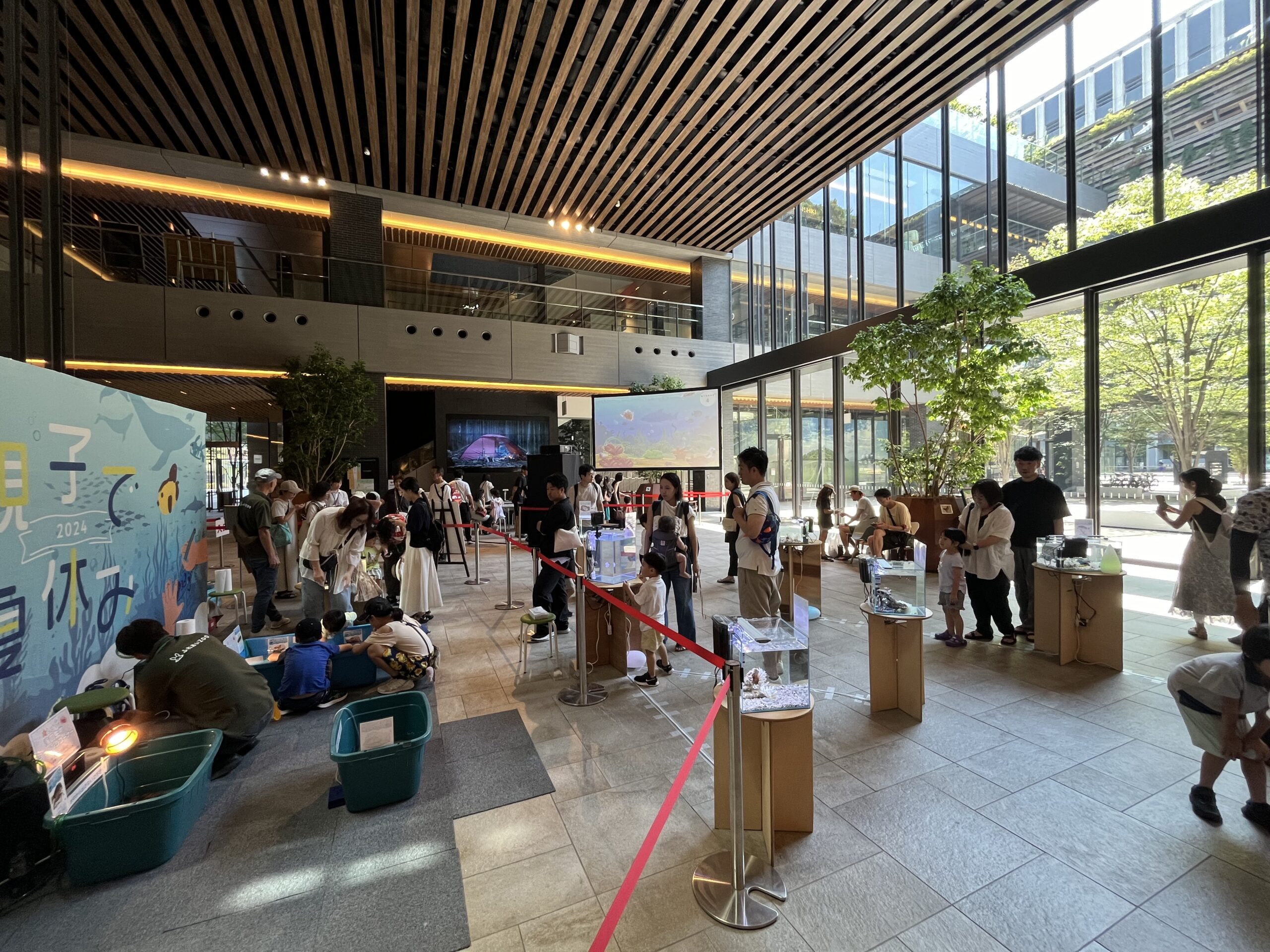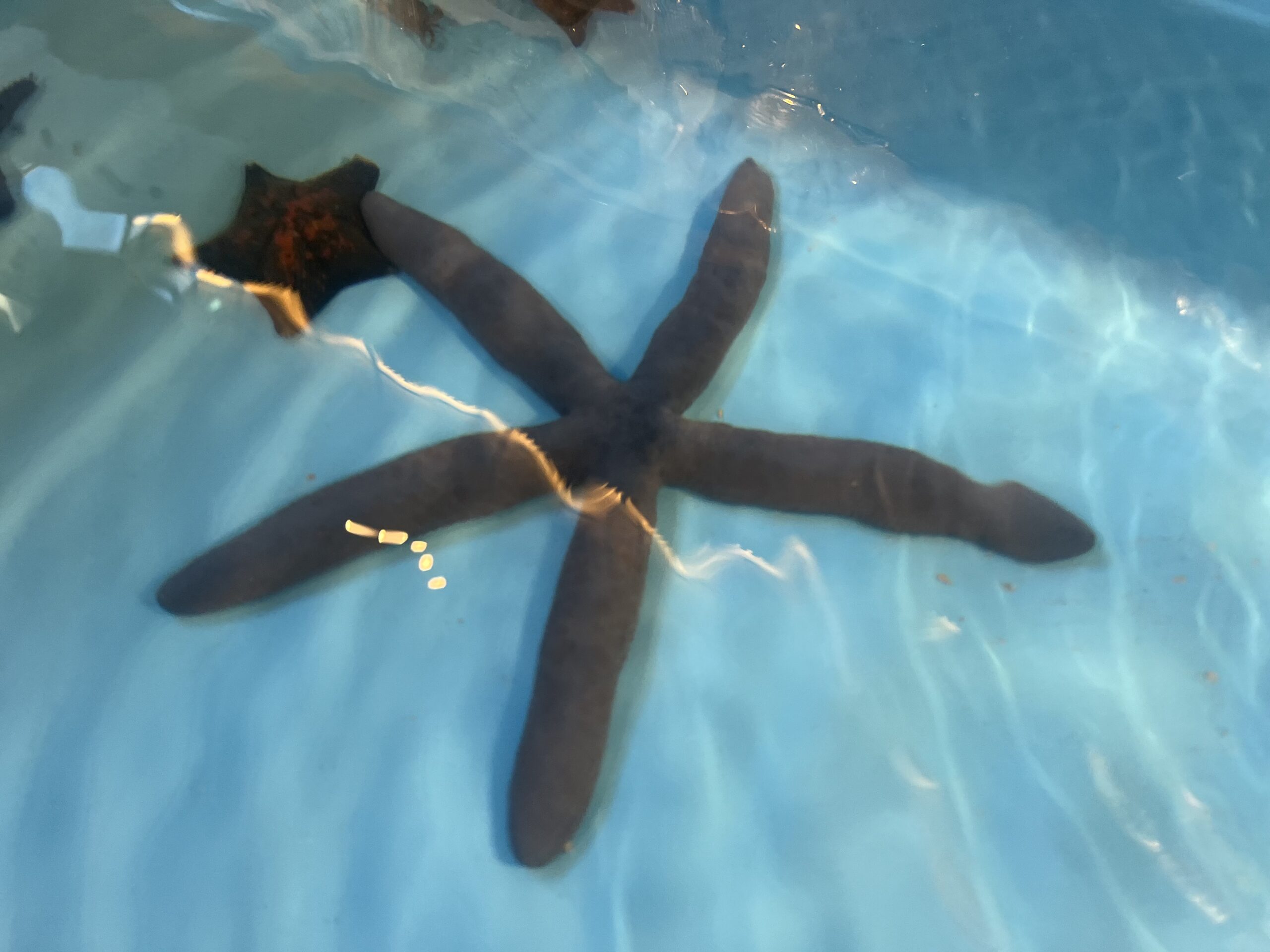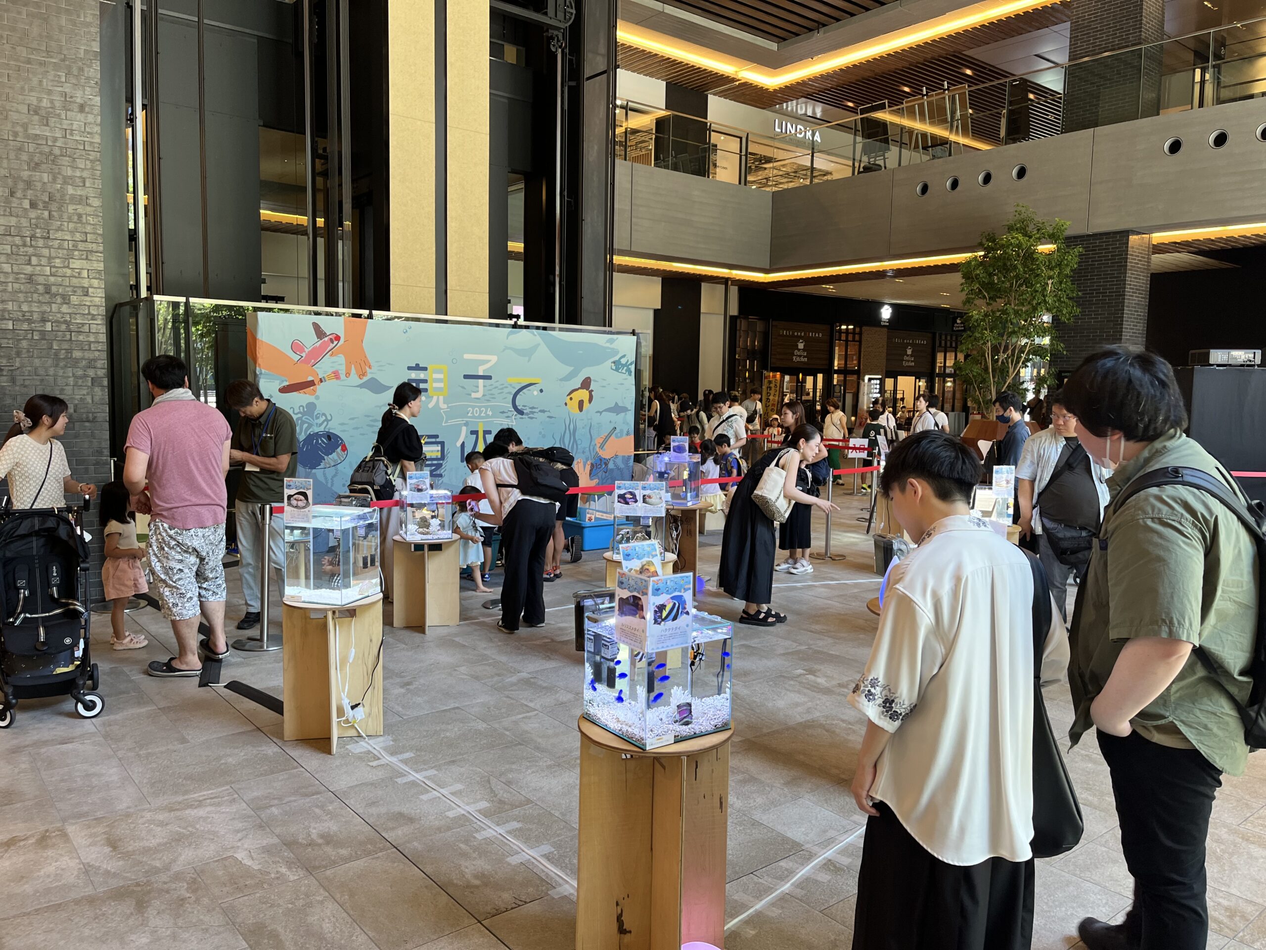 夏休み真っ只中の8月9日〜8月12日、計4日間にわたりたくさんの方にお越しいただけました。綺麗な水槽展示はもちろん、小さなお子様でもお楽しみいただけるタッチングコーナーも設けてありドクターフィッシュや、海の生き物とふれあってもらいとても楽しんでおられました。海の生き物コーナーでは、ナマコやヒトデ、普段あまり生きている姿を見ない伊勢エビ、大型のカブトガニなど珍しいの生き物たちがいて子供たちがドキドキわくわくしながら触れ合っていました!大人の顔ほどあるカブトガニはみなさん驚かれていましたね!伊勢エビも食べる時の姿と生きている姿を比べていらっしゃった方もおられました。展示されている水槽でもカクレクマノミやハリセンボン・チンアナゴ・ハナヒゲウツボ・シマサメ・クラゲなど様々な種類のお魚をご覧いただけました。夏の暑い日に少しでも涼しげな空間を体験して貰えたかと思います。